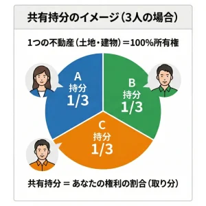 この記事では、ふだん不動産に触れない方に向けて、共有不動産の持分の意味や「あなた一人でできること・できないこと」を分かりやすく解説します。